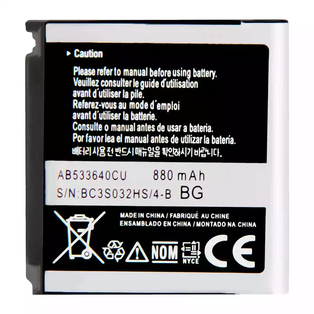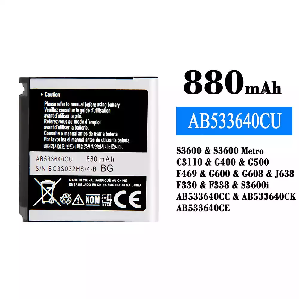 Aккумулятор AB533640CU Применимый к Samsung S3600/S3600 Metro/C3110/G400/G500/F469/G600/G608/J638/F330/F338/S3600i/AB533640CC/AB533640CK/AB533640CE