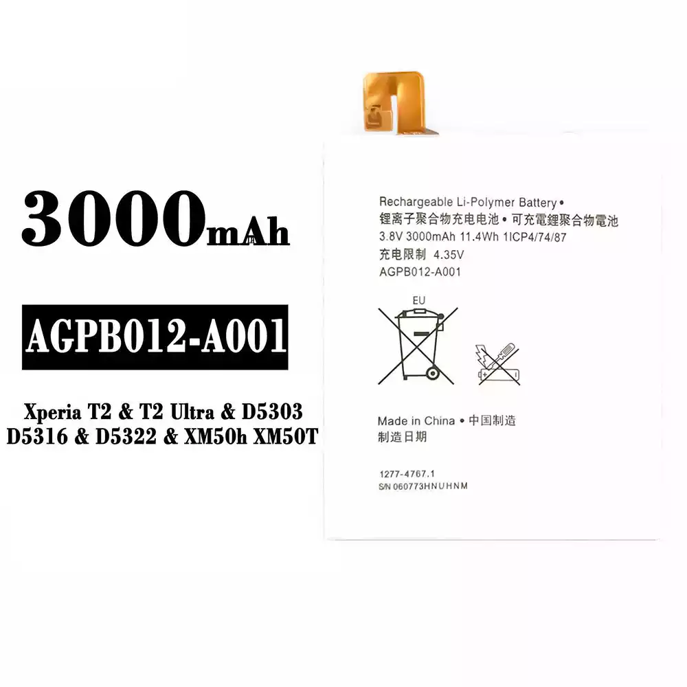 Aккумулятор AGPB012-A001 Применимый к Sony Xperia T2 / T2 Ultra / D5303 / D5316 / D5322 / XM50h / XM50T