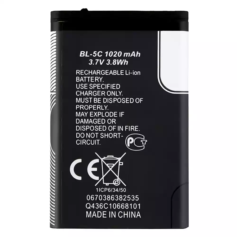 Aккумулятор BL-5C Применимый к Nokia Nokia 1101 / 1100 / 1110 / 1110i / 1112 / 1200 / 1208 / 1280 / 1600 / 1650 / 2310 / 2600 / 2700 / 3100 / 3110 / 3120 / 5130 / 6030 / 6230 / 6230i / E50 / E60 / N70 / N71 / N72