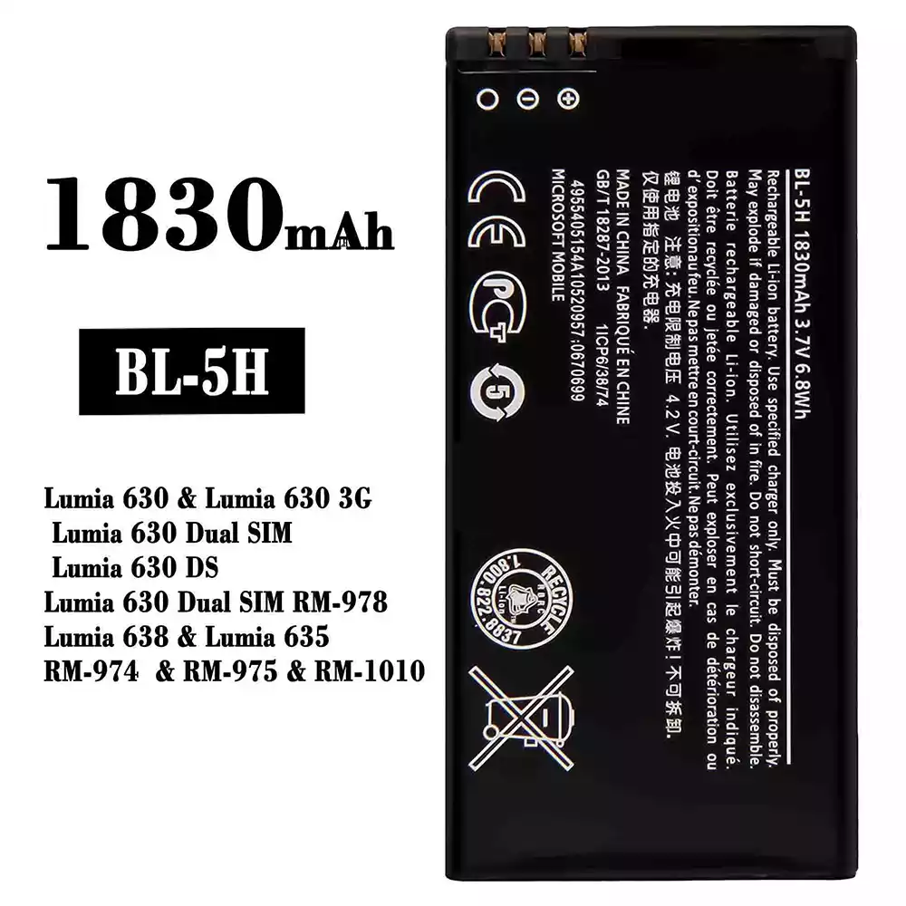 Aккумулятор BL-5H Применимый к Nokia Lumia 630 / Lumia 630 3G / Lumia 630 Dual SIM / Lumia 630 DS / Lumia 630 Dual SIM RM-978 / Lumia 638 / Lumia 635 / RM-974 / RM-975 / RM-1010