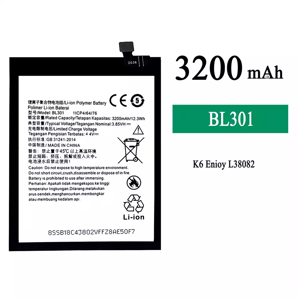 Aккумулятор BL301 Применимый к Lenovo K6 Enjoy L38082