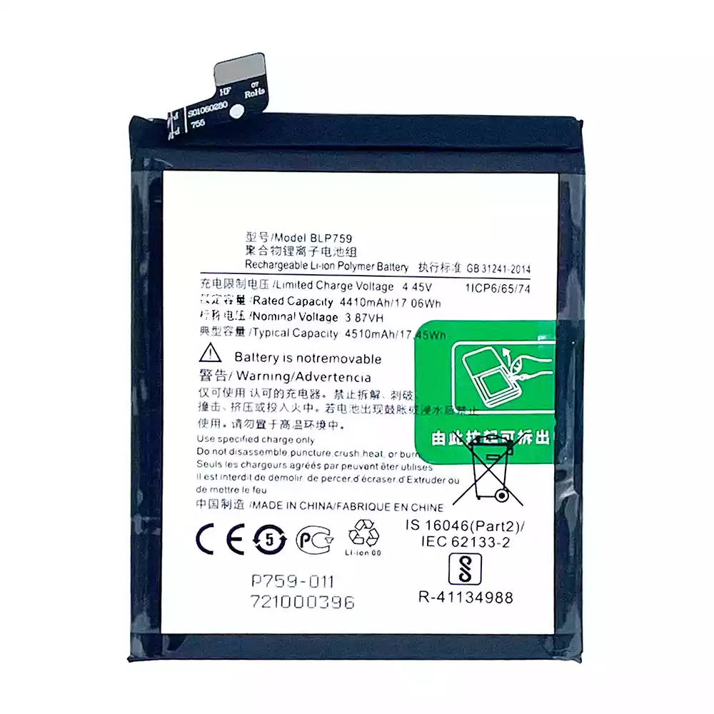 Aккумулятор BLP759 Применимый к OPPO 1+8Pro