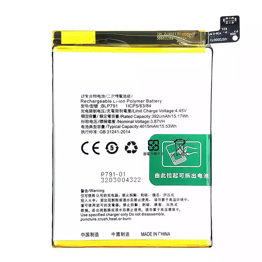 Aккумулятор сотового телефона BLP791 Применимый к OPPO Reno 4 4G /Reno 4 Lite /F17 /A73 4G