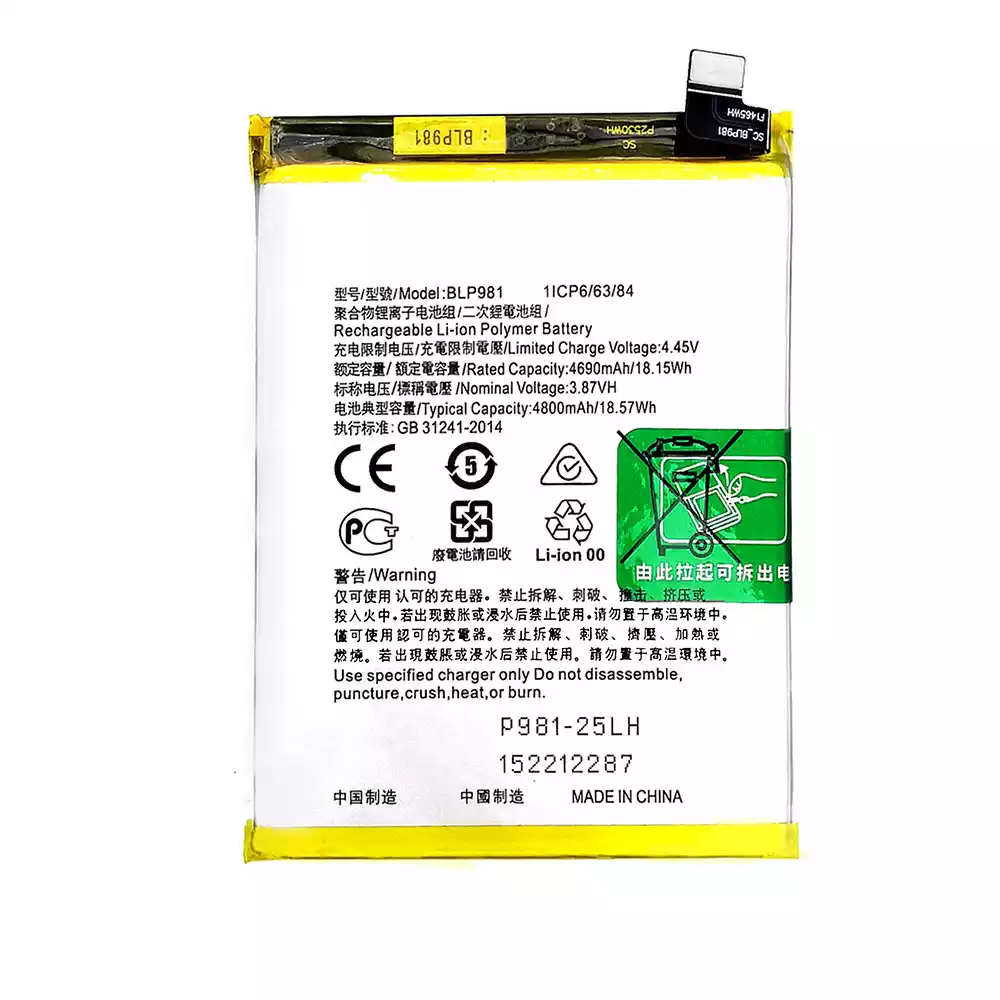 Aккумулятор сотового телефона BLP981 Применимый к OPPO Reno 8T