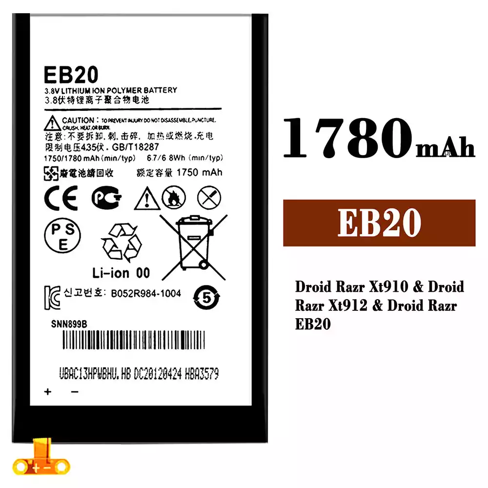 Aккумулятор EB20 Применимый к Motorola Droid Razr Xt910 / Droid Razr Xt912 / Droid Razr EB20