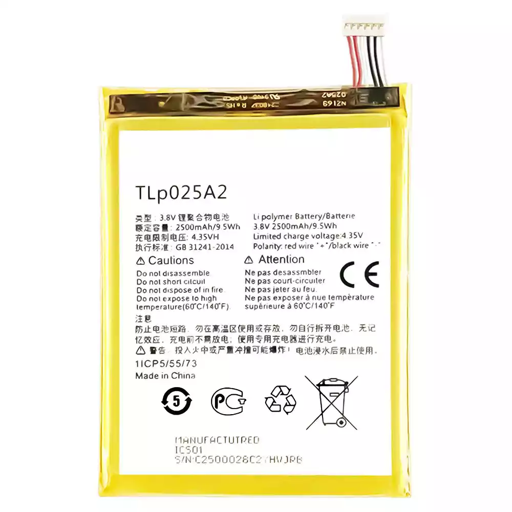 Aккумулятор TLp025A2 Применимый к Alcatel Pop2 5.0 / Pop2 5.0 Premium Idol X+ / One Touch Idol X Plus / One Touch Scribe Easy / Pop C9 / One Touch Scribe HD / One Touch Scribe X